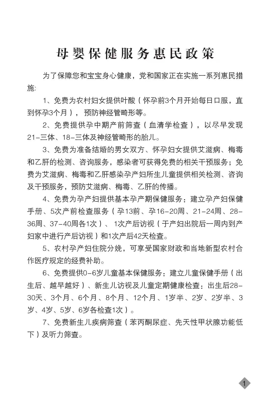【院外妇幼保健管理】妇幼健康领域重大公共卫生服务项目惠民政策措施介绍