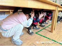 第一声地震预警警报响起,立即进入紧急避险状态。“地震啦!大家快躲到安全区域!”孩子们在老师的指导下迅速抱头、蜷曲身体,躲到桌子底下或墙角三角安全区域。