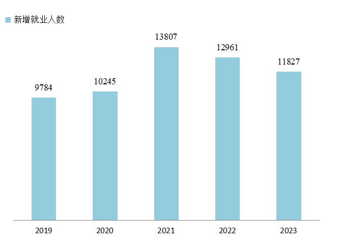 图2 2019-2023年田家庵区新增就业人数(单位:人)