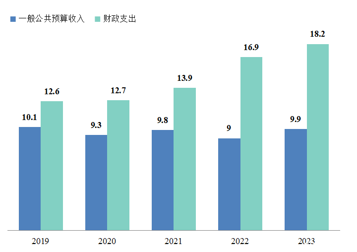 2023年,累计完成一般公共预算收入9.9亿元,增长10.4%,其中:增值税完成5.2亿元,增长20.9%。