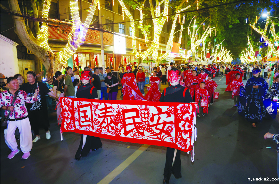 为丰富老百姓精神文化生活,推动非遗传承创新,打造城市文旅新名片,10月8日晚,田家庵区在淮河老街1952进行精彩的剪纸展示和汉服走秀活动,吸引众多市民、游客驻足观赏。(记者 张越 摄)