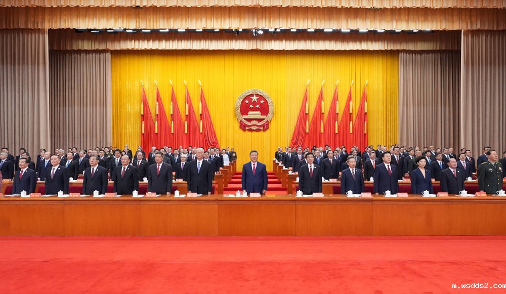 上午10时30分许,在欢快的乐曲声中,习近平等领导同志走上主席台,全场响起长时间的热烈掌声。