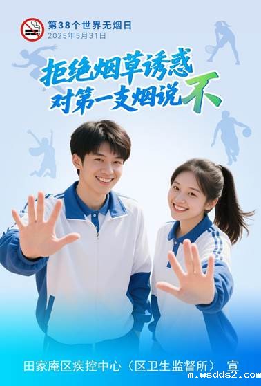 2025年5月31日,是世界第38个世界无烟日。1987年11月世界卫生组织(WHO)在日本东京举行的国际会议上建议将世界无烟日定为每年4月7日,但从1989年开始,世界无烟日改为每年5月31日,因为第二天是国际儿童节,希望下一代免受烟草危害。