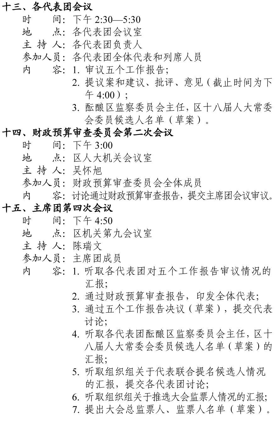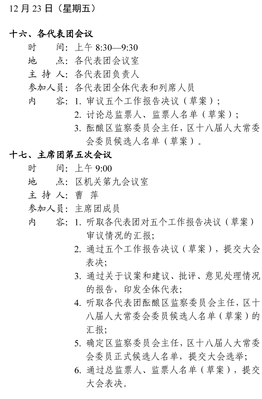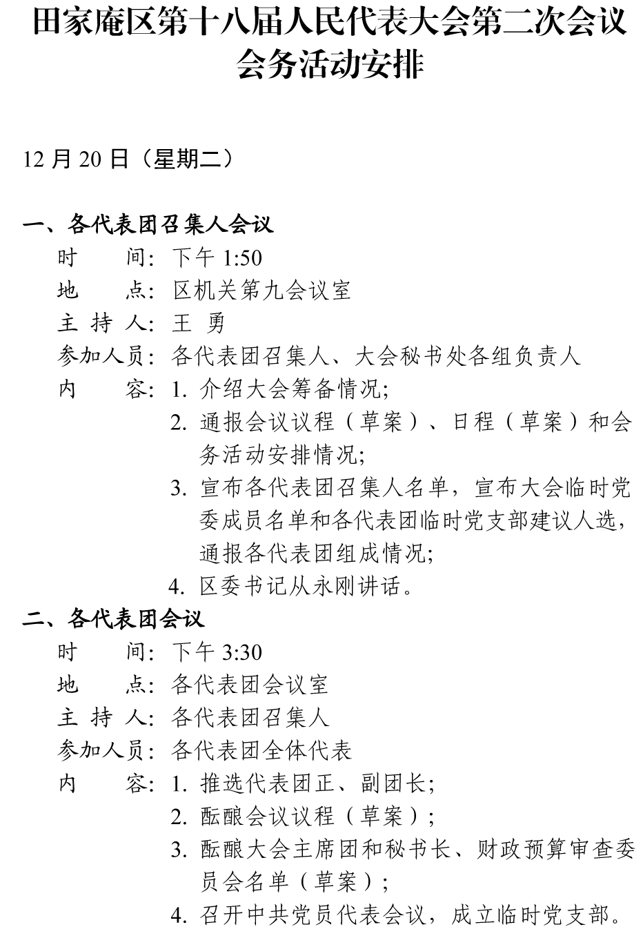 田家庵区第十八届人民代表大会第二次会议会务活动安排
