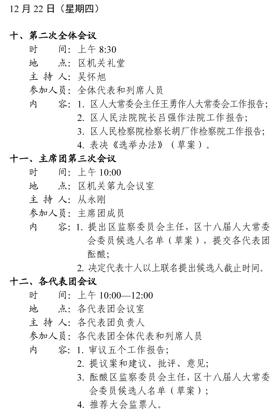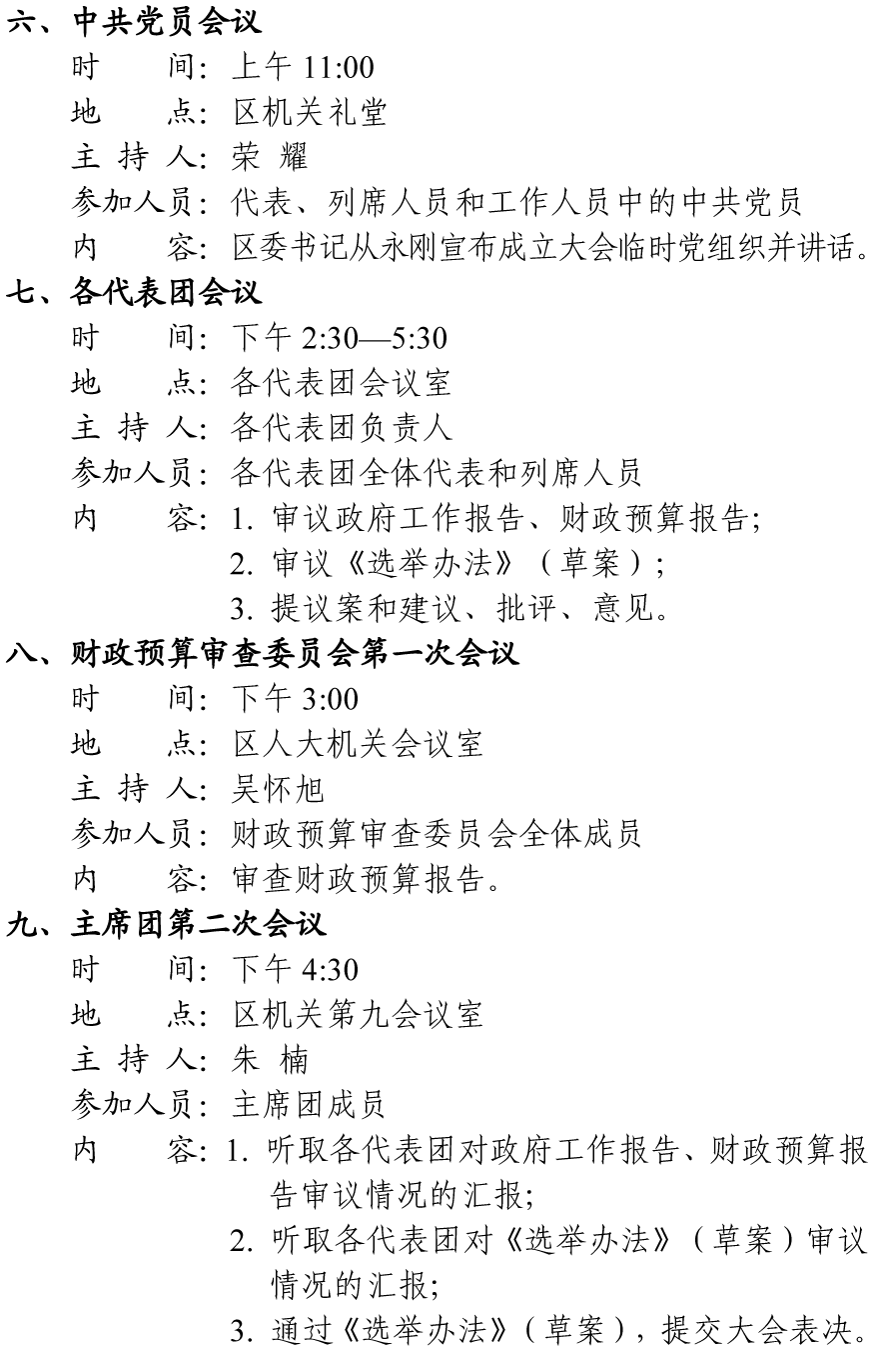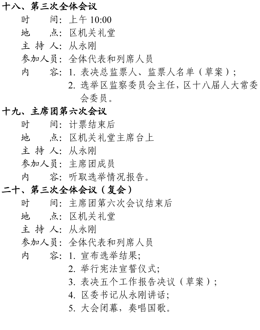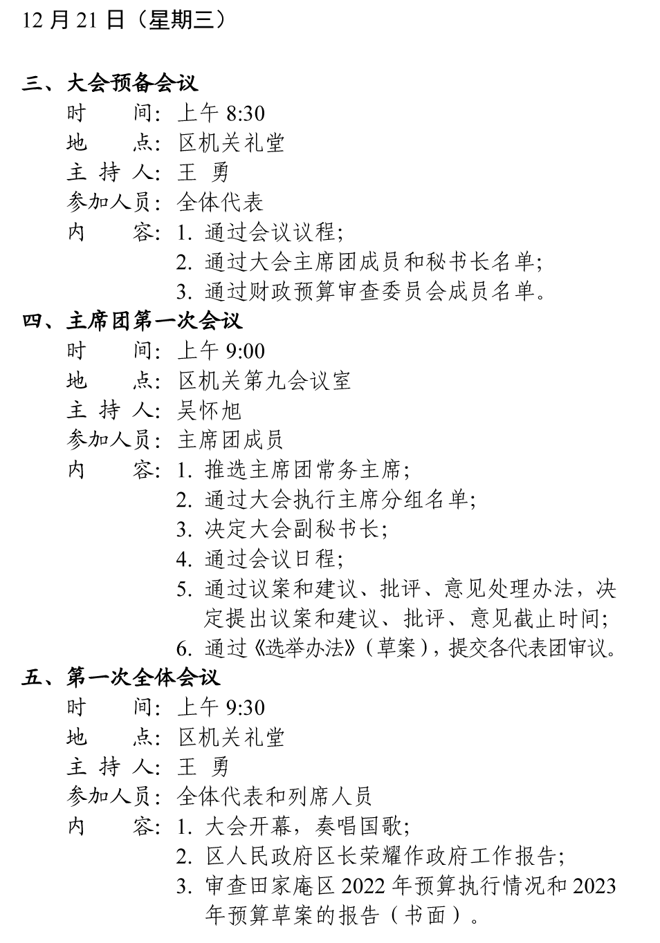 田家庵区第十八届人民代表大会第二次会议会务活动安排