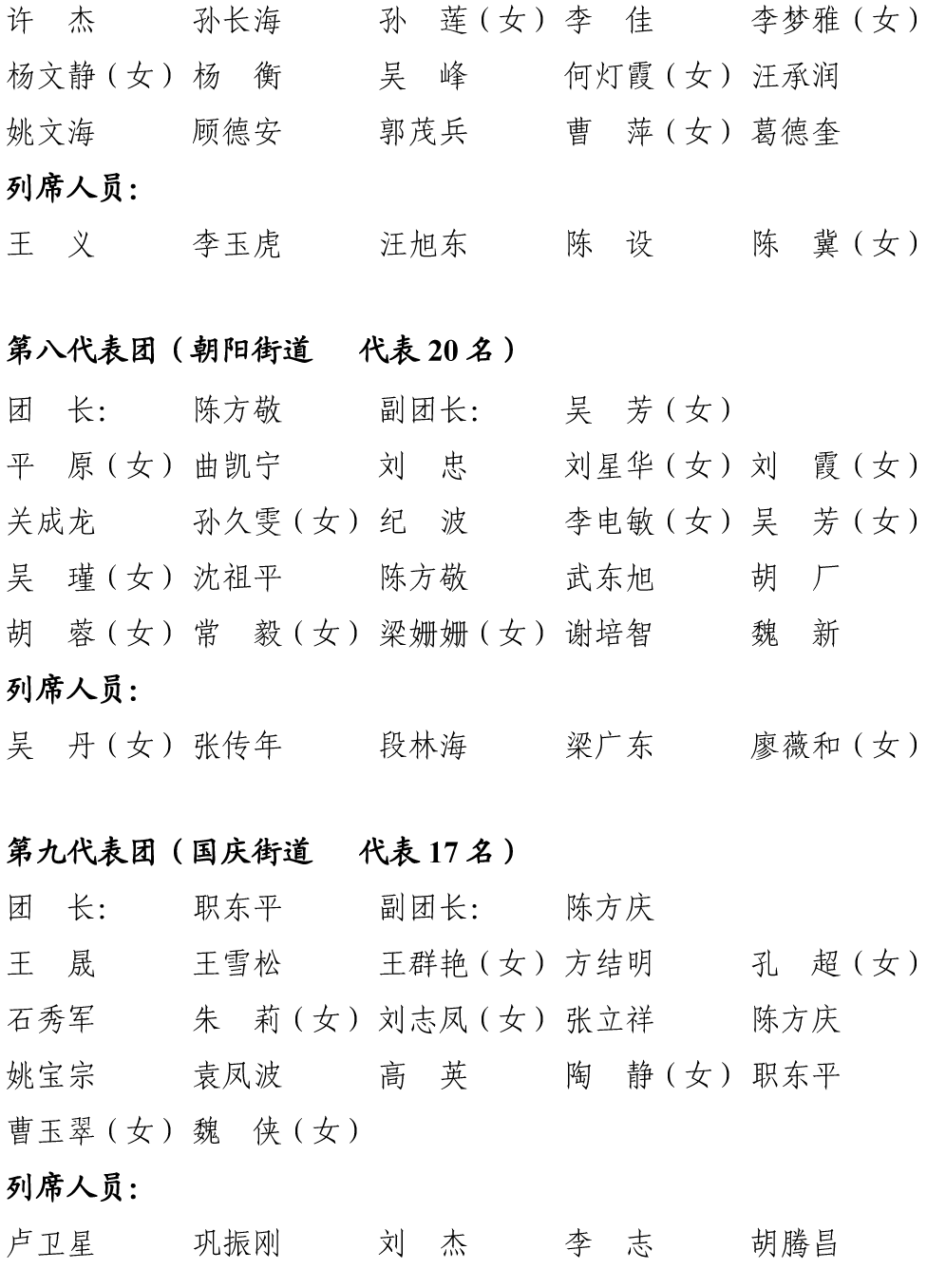 田家庵区第十八届人民代表大会第二次会议代表及列席人员名单