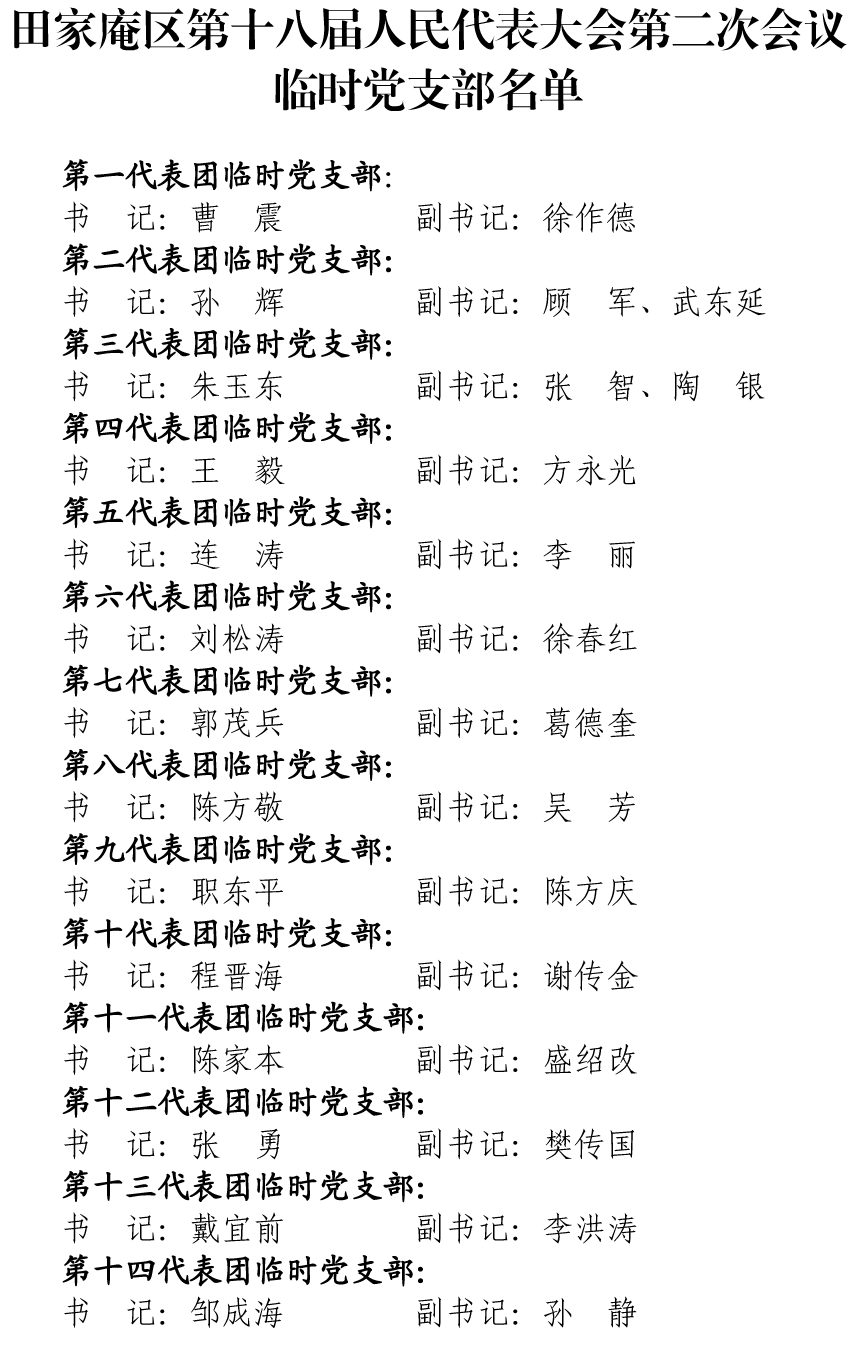 田家庵区第十八届人民代表大会第二次会议临时党支部名单