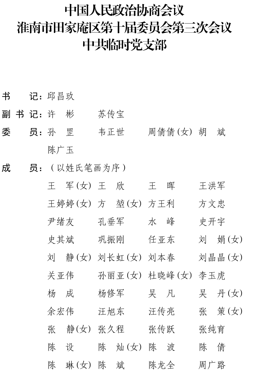 中国人民政治协商会议淮南市田家庵区第十届委员会第三次会议中共临时党支部
