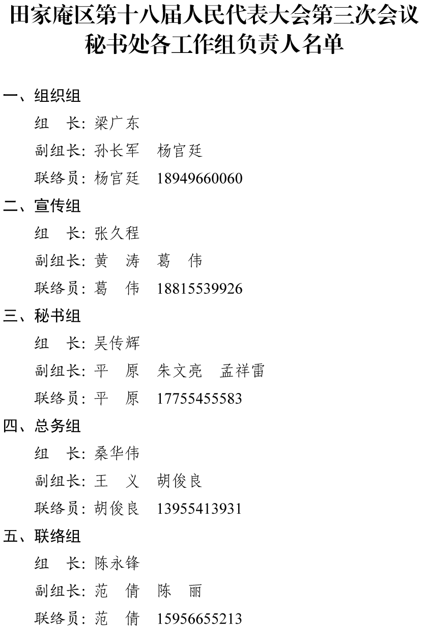 田家庵区第十八届人民代表大会第三次会议秘书处各工作组负责人名单