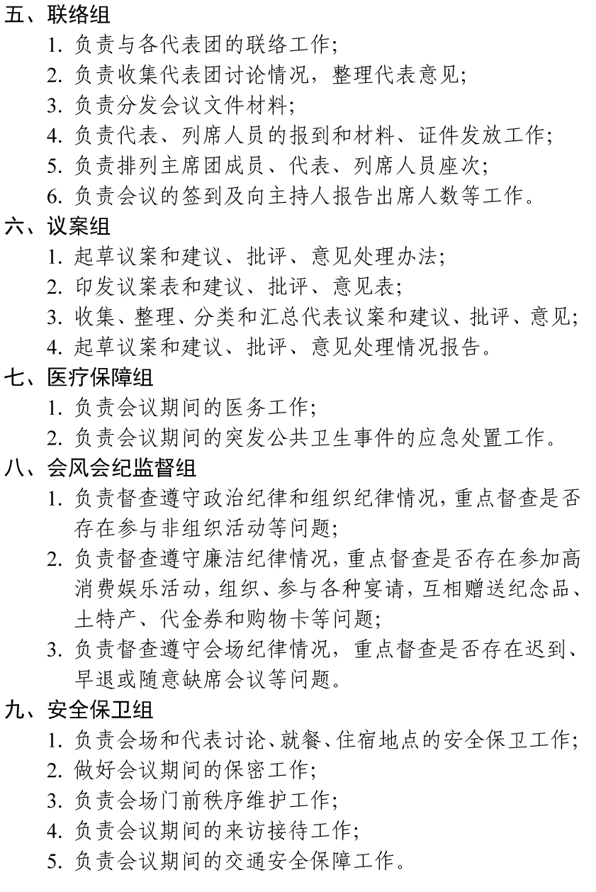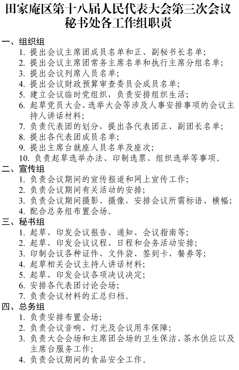 田家庵区第十八届人民代表大会第三次会议秘书处各工作组职责