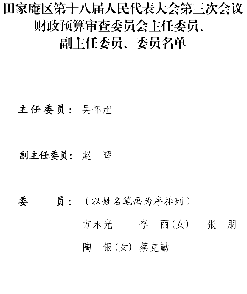 田家庵区第十八届人民代表大会第三次会议财政预算审查委员会主任委员、副主任委员、 委员名单