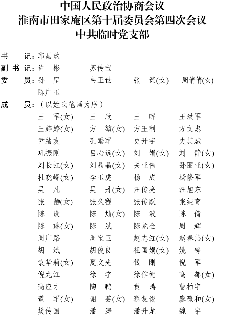 中国人民政治协商会议淮南市田家庵区第十届委员会第四次会议中共临时党支部